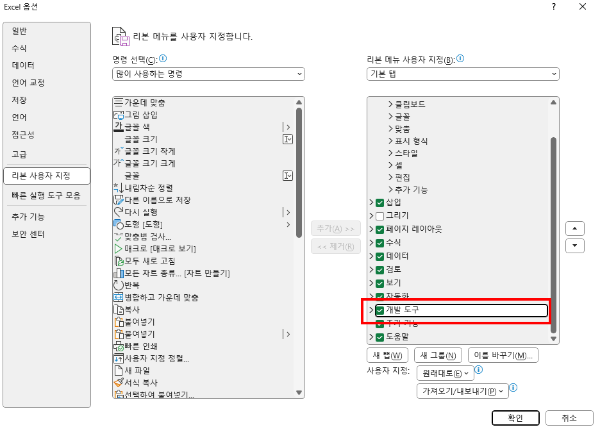 2. 개발 도구 탭 활성화